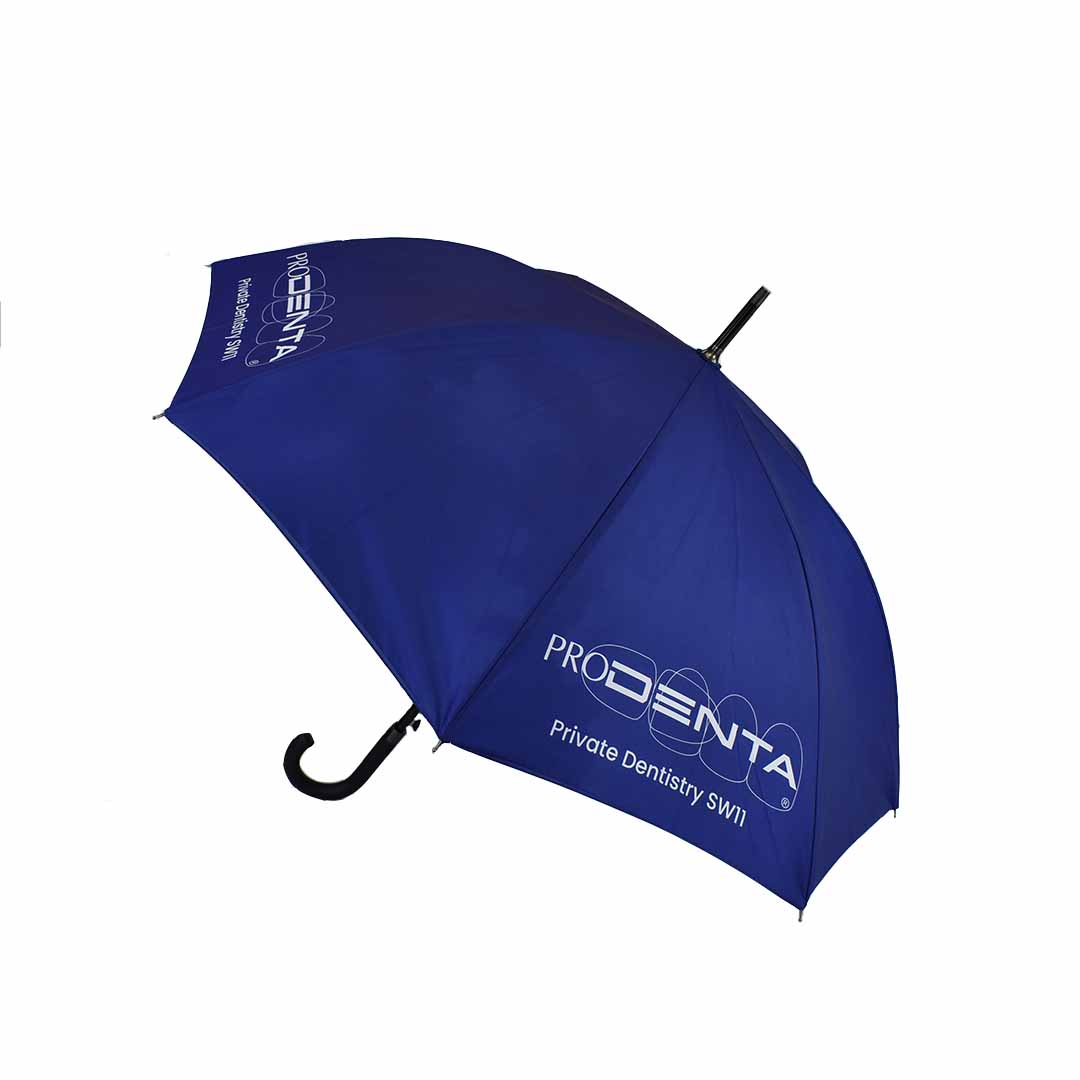 This premium storm-proof model is durable as well as practical, boasting top quality fittings and large branding potential. Available with internal and external canopy print, logo print, seam matched design, engraved handle rings and more this model is not only elegant, but also a great umbrella for customisation to fit into your company branding.