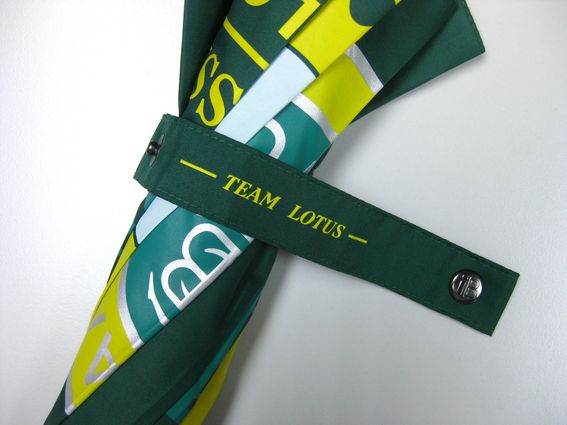 Made from the same polyester pongee fabric and coming in the same colour as the panels of the umbrella, unless otherwise specified, the tie wrap is a small strip of fabric that wraps around the closed umbrella. Tie wraps usually utilise a popper to close the wrap and keep the umbrella canopy closed and tidy when not in use. A woven or printed label can also be added to the tie wrap to customise the umbrella and the popper can also be a different colour or embossed.