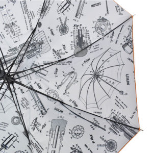 This umbrella is particularly spectacular, with original illustration details, silicone crooked handle and bright orange Pantone matched outer canopy. Read the full story about this umbrella here.