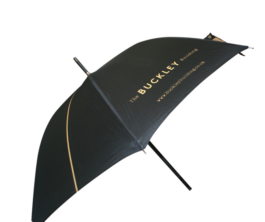 Our range of umbrellas include three core models: golf umbrellas, walking umbrellas and folding umbrellas. Each model includes variants to suit your budget or lead time. It maybe you need an umbrella quickly and therefore we’ll offer you a UK manufactured umbrella which we can turn around within 2-3 weeks. Customisation options are limited to a logo print on a UK manufactured umbrella, but if you have a slightly longer lead time then we can print inside and outside of the umbrella. You can add a branded woven label to your customised umbrella or you can engrave a neck ring to a walking umbrella or a branded logo disk to a golf umbrella handle.