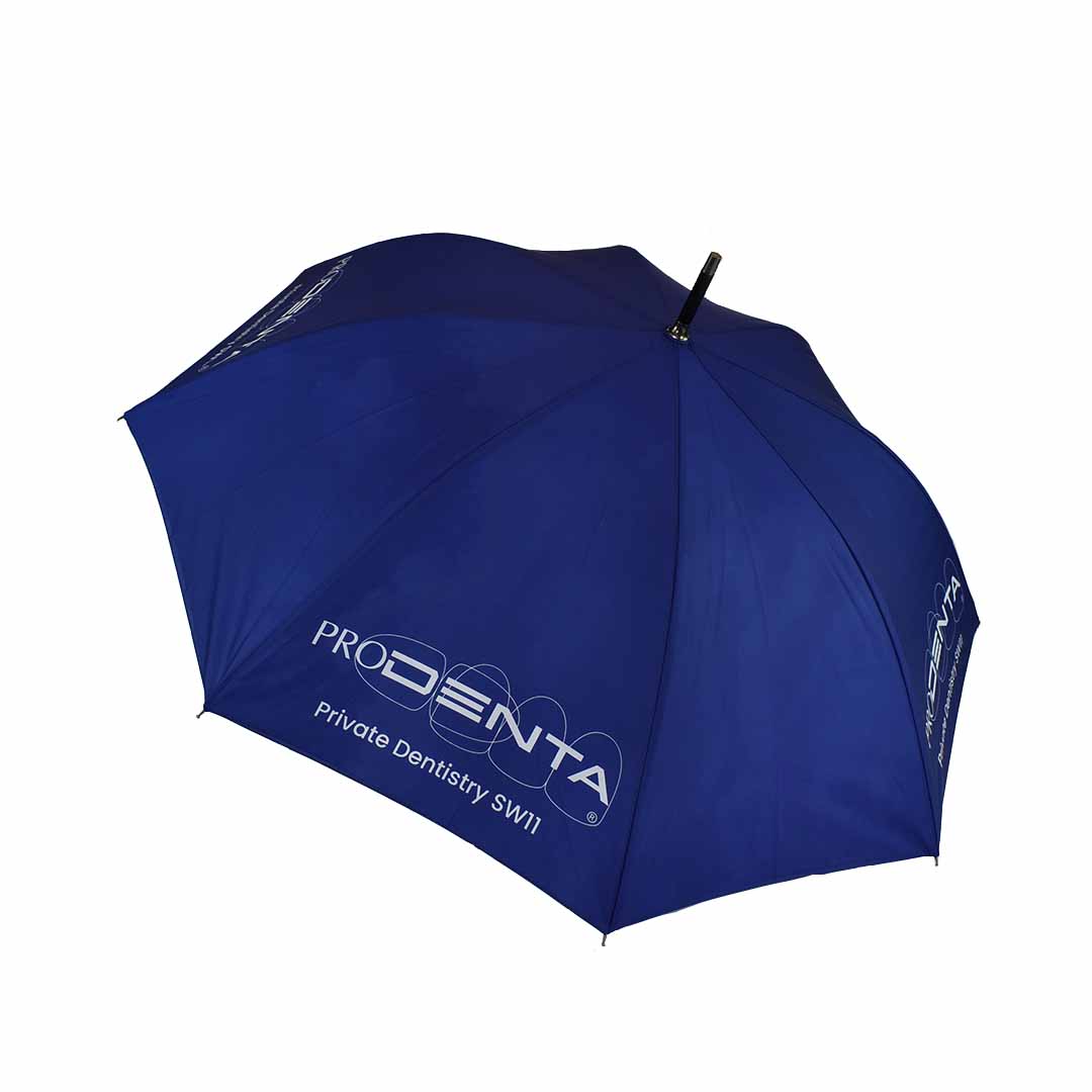 This premium storm-proof model is durable as well as practical, boasting top quality fittings and large branding potential. Available with internal and external canopy print, logo print, seam matched design, engraved handle rings and more this model is not only elegant, but also a great umbrella for customisation to fit into your company branding.