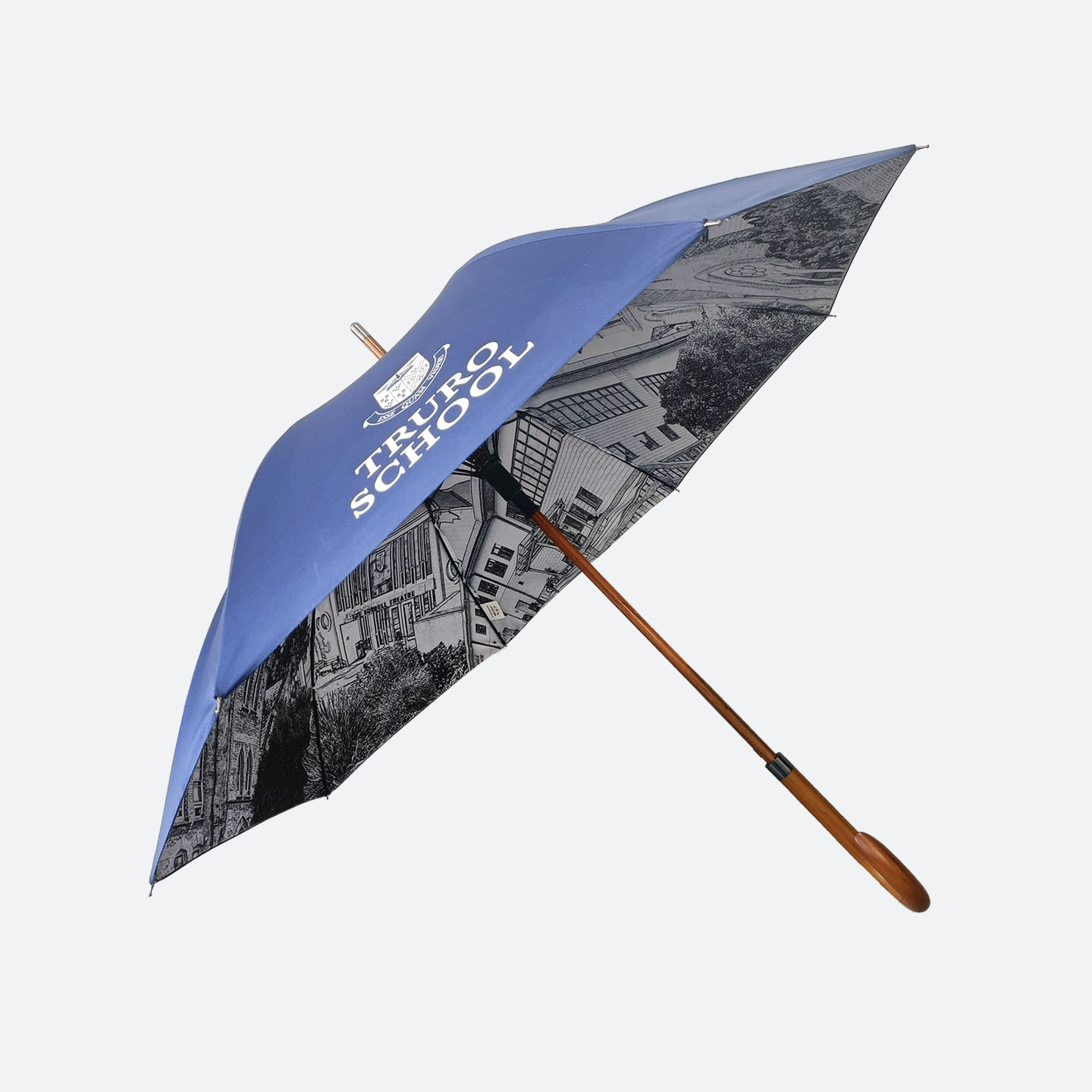 This Wood Walking umbrella exemplifies our exceptional printing capabilities, showcasing high-quality craftsmanship. The umbrella boasts a distinctive double canopy design, with the exterior featuring a precisely matched navy-blue Pantone colour, complemented by the school’s logo on two panels. Meanwhile, the interior canopy showcases a captivating, full-scale digital print, adorned with illustrations against a pristine white backdrop, accentuating even the most intricate details.
